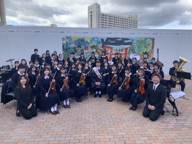 現在、管弦楽部は12月に高校2年生が引退し、新体制で活動を始めたばかりです。当日は引退した高校2年生5名も演奏に参加し、部員59名(中学生36名・高校生23名)で心を一つにして演奏を届けました。 今回の出演を通して、音楽で地域社会に貢献することの意義を改めて感じる機会となりました。今後も管弦楽部は、演奏活動を通じて地域との交流を大切にしてまいります。