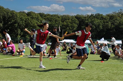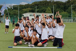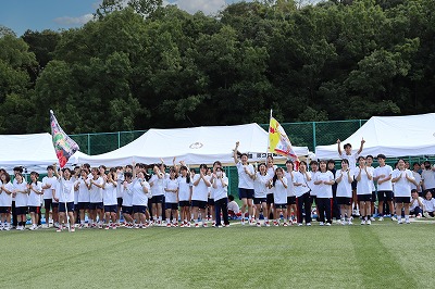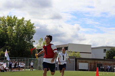 今年からは中学1年生から3年生までが赤団・白団に分かれて対決。学年の枠をこえた応援の声がグラウンドいっぱいに響き渡りました。各競技では真剣な走りや熱い勝負が繰り広げられ、特にクラス対抗リレーでは「クラスの威信」をかけた白熱の展開となりました。また、クラブ対抗リレーでは、「クラブの看板」を背負った力強い走りが見られました。