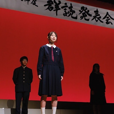 3月7日(土)、総合学習発表会終了後の午後から、中学1年生は国際障害者交流センター(ビッグ・アイ)にて「群読コンクール」を実施しました。1年間取り組んできた群読の成果を発表する場として、生徒たちはこの日のために練習を重ねてきました。
