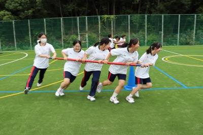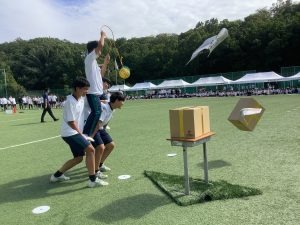 特に学年ごとの「学年種目」では、生徒たちが仲間と声を掛け合いながら、どうすればうまくできるかを試行錯誤していました。初めての種目に戸惑う様子も見られましたが、協力し合いながら一生懸命に取り組む姿が印象的でした。