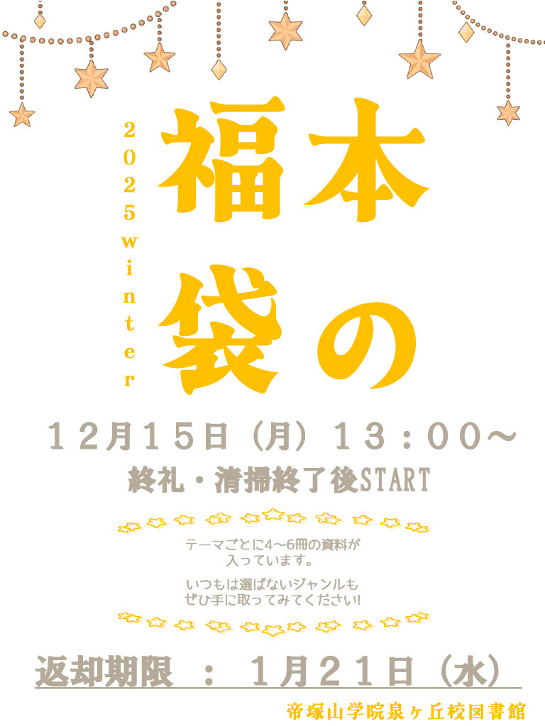 また図書館では、この時期恒例の企画として「本の福袋」を開始しました。